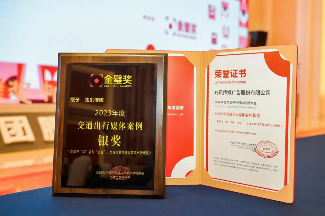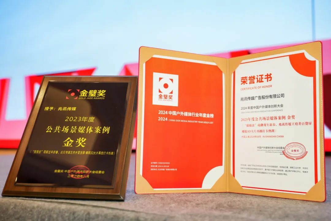 8月(yuè)21日(rì)-23日(rì),第六屆金(jīn)璧獎·2024中國(guó)戶外(wài)媒體(t↓ǐ)創新大(dà)會(huì)在上(shàng)海(hǎi)隆重舉行(xíng),戶外(wài)數(shù)字媒體(tǐ)領軍者兆訊傳媒受邀出席,攜獨立自(zìα)制(zhì)作(zuò)品“‘貓貓蟲’萌翻龍年(nián)新春裸眼3D案例”榮獲2023年(nián)度公共場(chǎng)景媒體(tǐ)金(jīn)獎、攜手品牌夥伴加多(duō)寶“龍≤躍萬‘加’ 多(duō)财‘多(duō)寶’高(gāo)鐵(tiě)場(chǎng)景營銷案例”榮獲2023年(nián)度交通(tōng)出行(xíng)媒體(tǐ)銀(yín‌)獎!