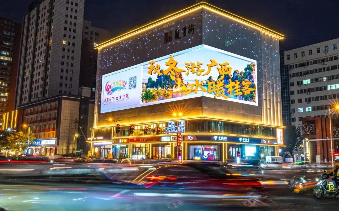 數(shù)字驅動 智領時(shí)代 在數(shù)字化(huà)的(de)驅動下(xià),戶外(wài)廣告已不(bù)再局限于傳統的(de)平面展示。通(tōng)過核心商圈大(dà)屏的(de)多(duō)元呈現(xiàn),高(gāo)清流暢的(de)屏幕質量和(hé)前沿數(shù)字內(nèi)容制(zhì)作(zuò),為(wèi)城(chéng)市(shì)人(rén)©文(wén)、商業(yè)藝術(shù)表達提供了(le)更廣闊的(de)展示和(hé)想象空(kōng)間(jiān)。 商圈LED大(dà)屏作(zuò)為(wèi)現(xiàn)代城(chéng)市(shì)的(de)新地(dì)标,不(bù)斷推動“文(wén)旅+夜經濟+科(kē)技&(jì)”創新融合,構建具備鮮明(míng)地(dì)域特色的(de)城(chéng)市(shì)新舞(wǔ)台,也(yě)₹為(wèi)大(dà)衆帶來(lái)了(le)更加沉浸的(de)出行(xíng)體(tǐ)驗。 在都(dōu)市(shì)的(de)璀璨霓虹下(xià),廣西(xī)文(wén)旅宣傳廣告登陸兆訊戶✔外(wài)商圈大(dà)屏,演繹了(le)一(yī)場(chǎng)精彩紛呈的(de)視(shì)覺盛宴。從(cóng)氣勢磅礴的(de)崇左德天大(dà)瀑布,到(dào)甯靜δ(jìng)浪漫的(de)欽州三娘灣,嬉戲跳(tiào)躍的(de)中華白(bái)海(hǎi)豚帶我們走進美(měi)不(bù)勝收的(de)自(zì)然風(fēng)光(guān♥g). 壯美(měi)邊關、詩意山(shān)水(shuǐ)、浪漫濱海(hǎi)、多(duō)彩民(mín)族,$“桂林(lín)山(shān)水(shuǐ)甲天下(xià)”在此刻被具象化(huà),廣西(xī)文(wén)旅通(tōng)過全方位立體(tǐ)化(huà)宣傳推廣矩陣,進一(y≤ī)步打響“秀甲天下(xià) 壯美(měi)廣西(xī)”文(wén)旅品牌。