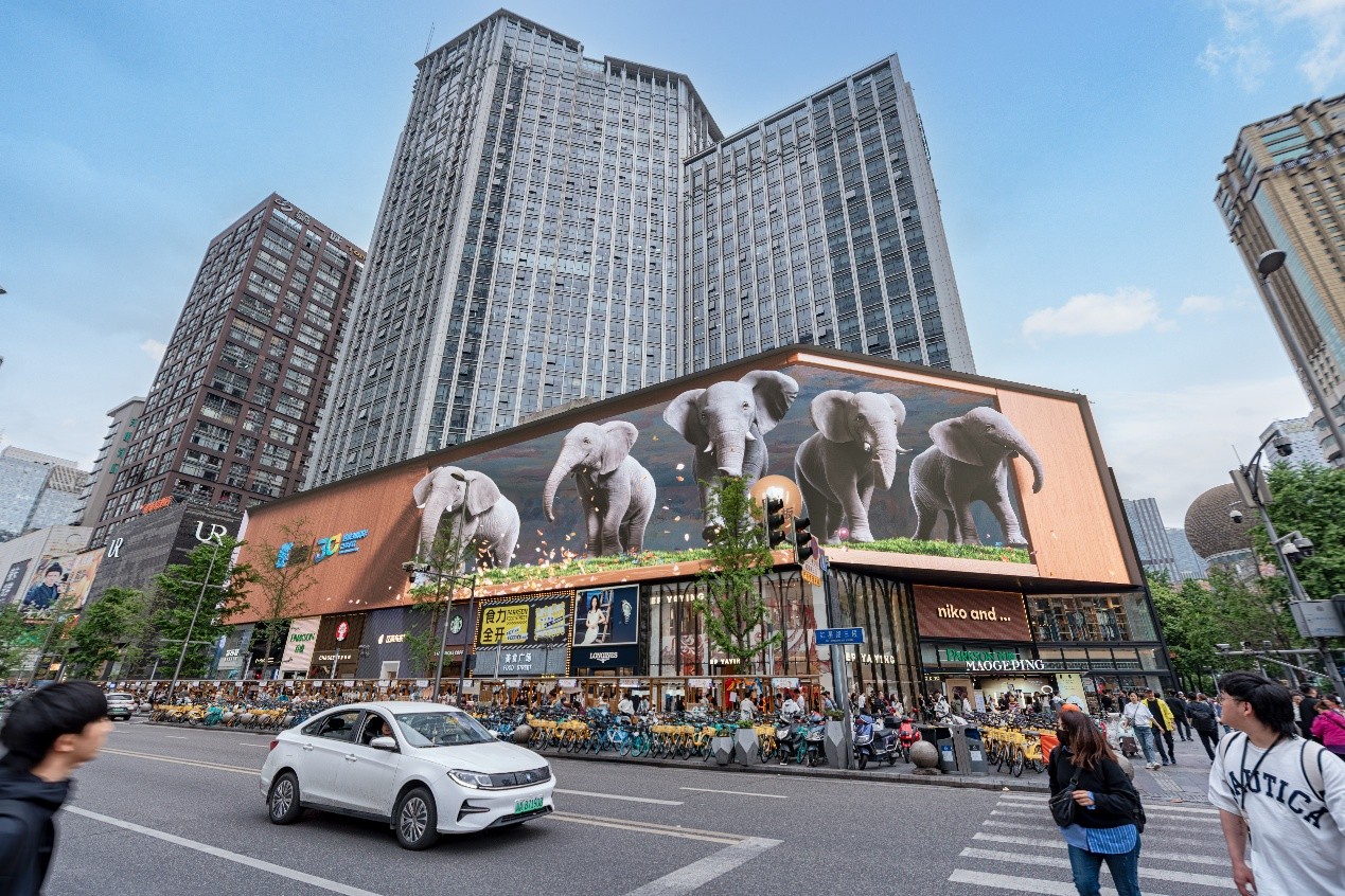 圖/ 兆訊傳媒裸眼3D大(dà)片《繁花(huā)映象》在成都(dōu)春熙路(lù)地(dì)标大(dà)屏上(shàng)映