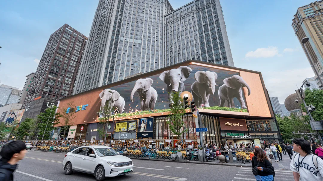 影(yǐng)片将創新數(shù)字技(jì)術(shù)與場(chǎng)景營銷完美(měi)融合,借助兆訊裸眼3D大(dà)屏打造栩栩如(rú✘)生(shēng)的(de)巨幕奇觀,動态花(huā)海(hǎi)從(cóng)屏幕蔓延至現(xiàn)實街(jiē)道(dào),與城(chéng)市(shì)景觀融為(wèi)一(yī)體(tǐ→),為(wèi)人(rén)們呈現(xiàn)了(le)一(yī)場(chǎng)人(rén)與自(zì)然共生£(shēng)的(de)公共藝術(shù)視(shì)覺盛宴,引得(de)路(lù)人(rén)駐足拍(pāi)照(zhào),連連稱奇。